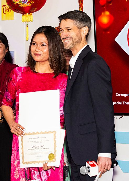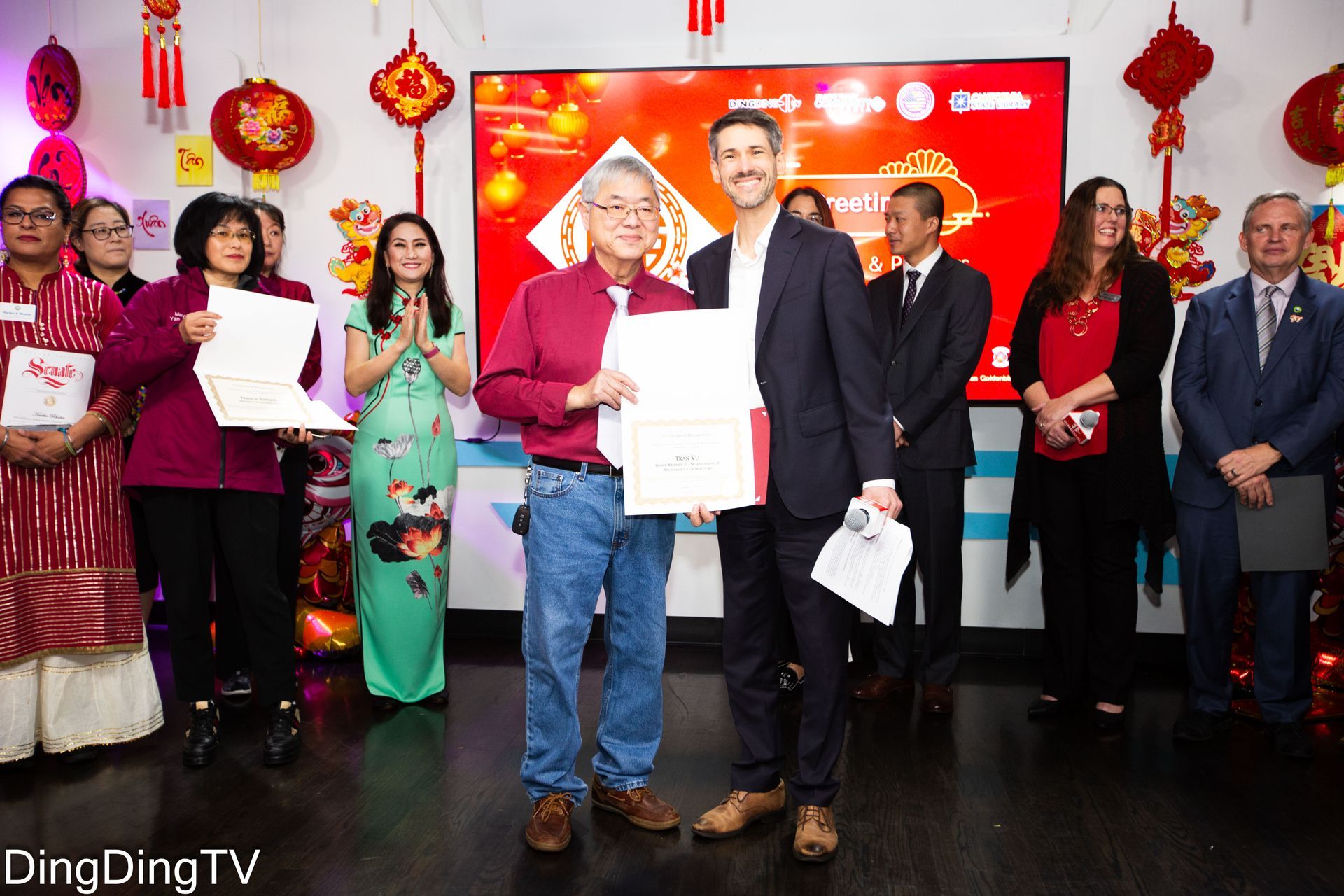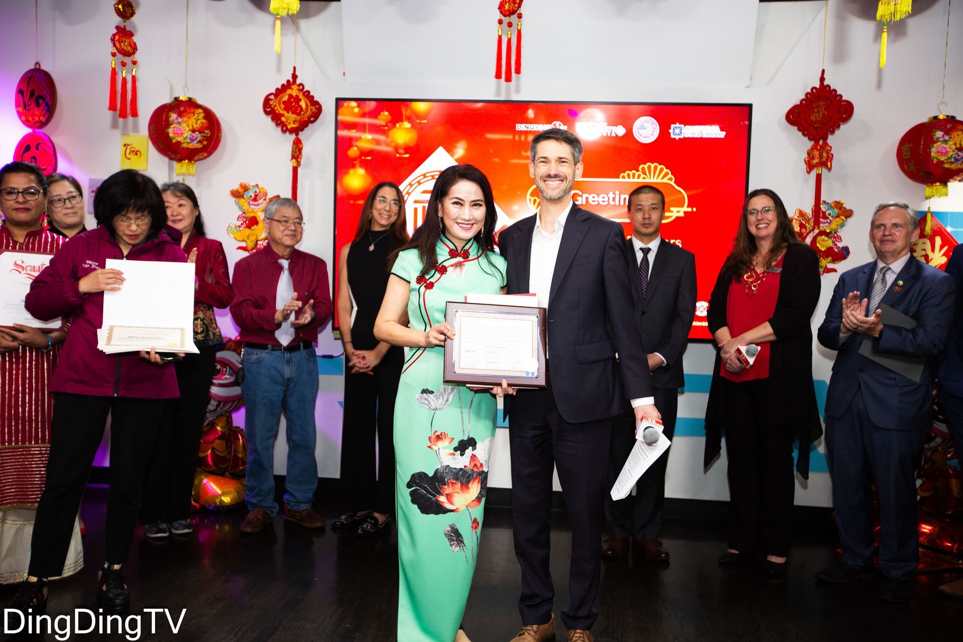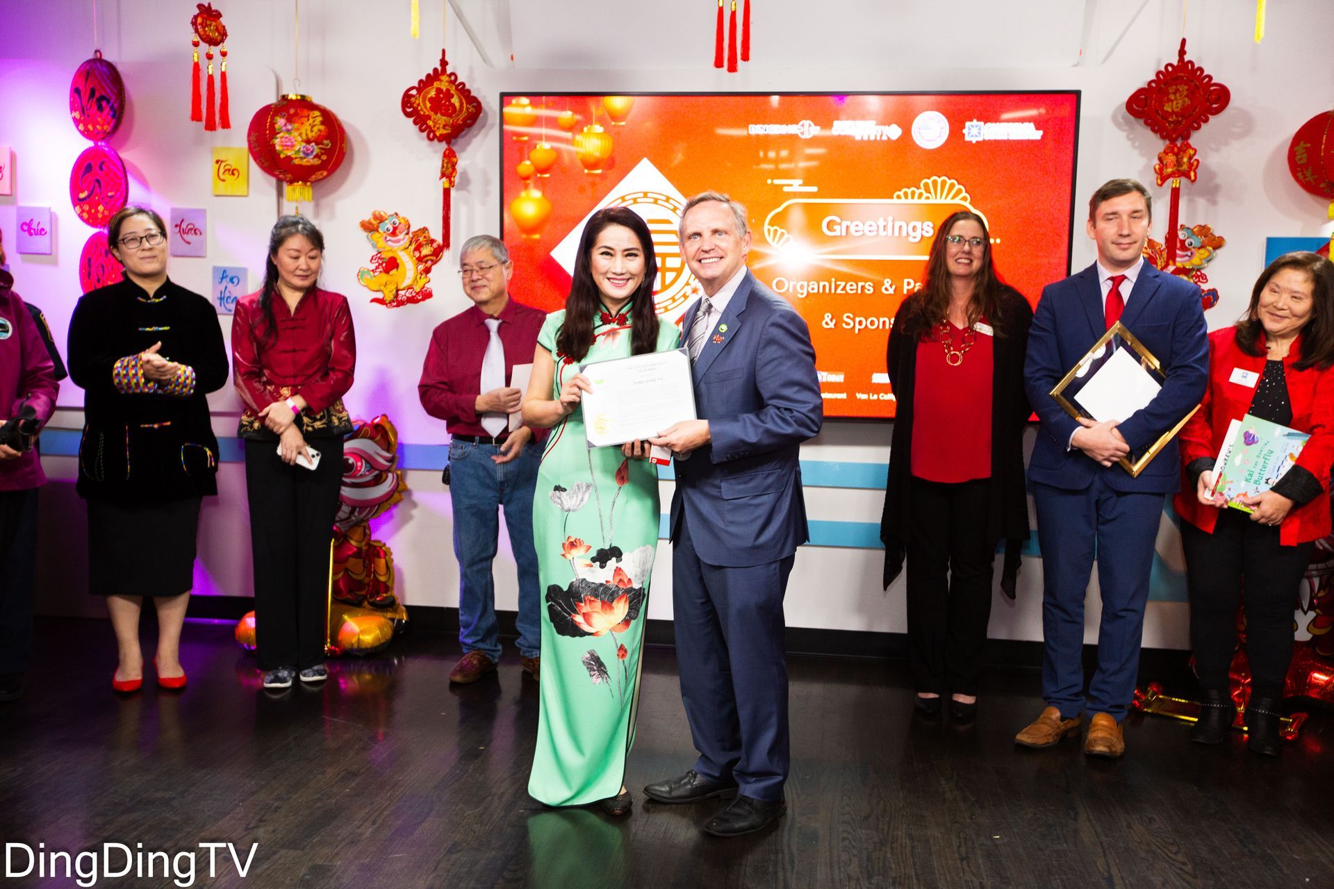 Minh Tran (Chair of Second Celebrate Lunar New Year Together) and Diana Ding (Co-Founding Chair) lead the team that hosted the event. Kai Jackie (Ding Ding TV reporter) and Li Zhang interviewed over 20 people and many of the elected officials that celebrated Lunar New Year with the community.