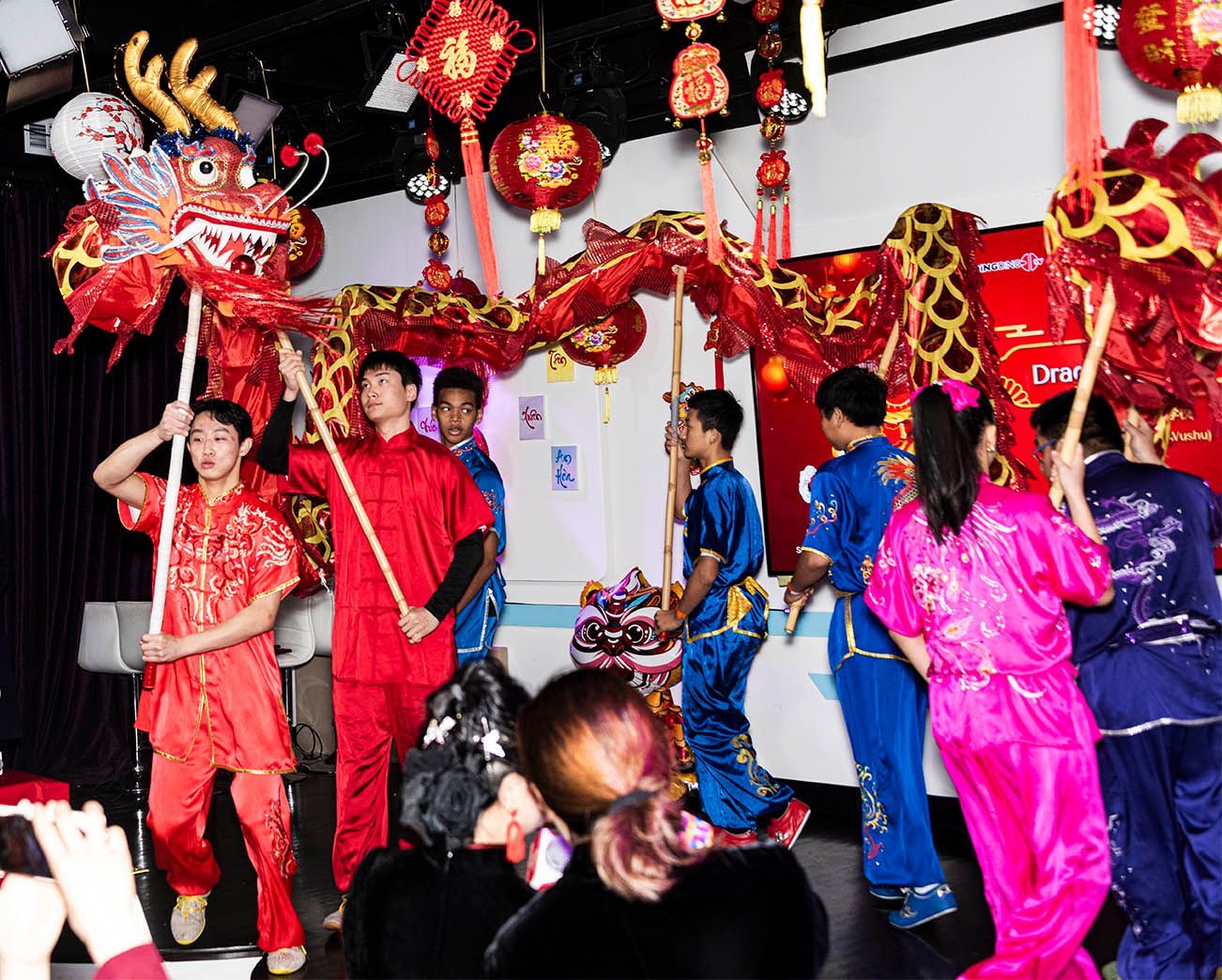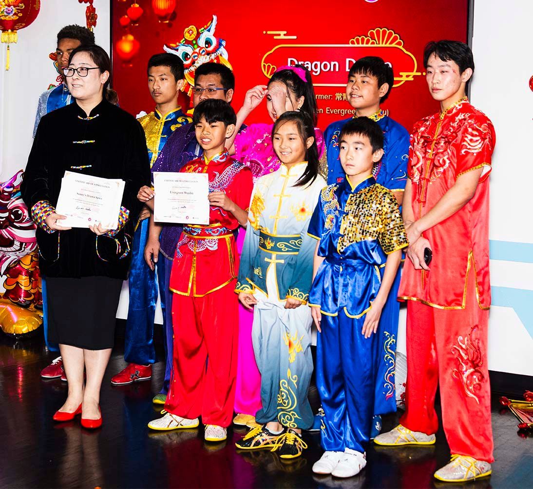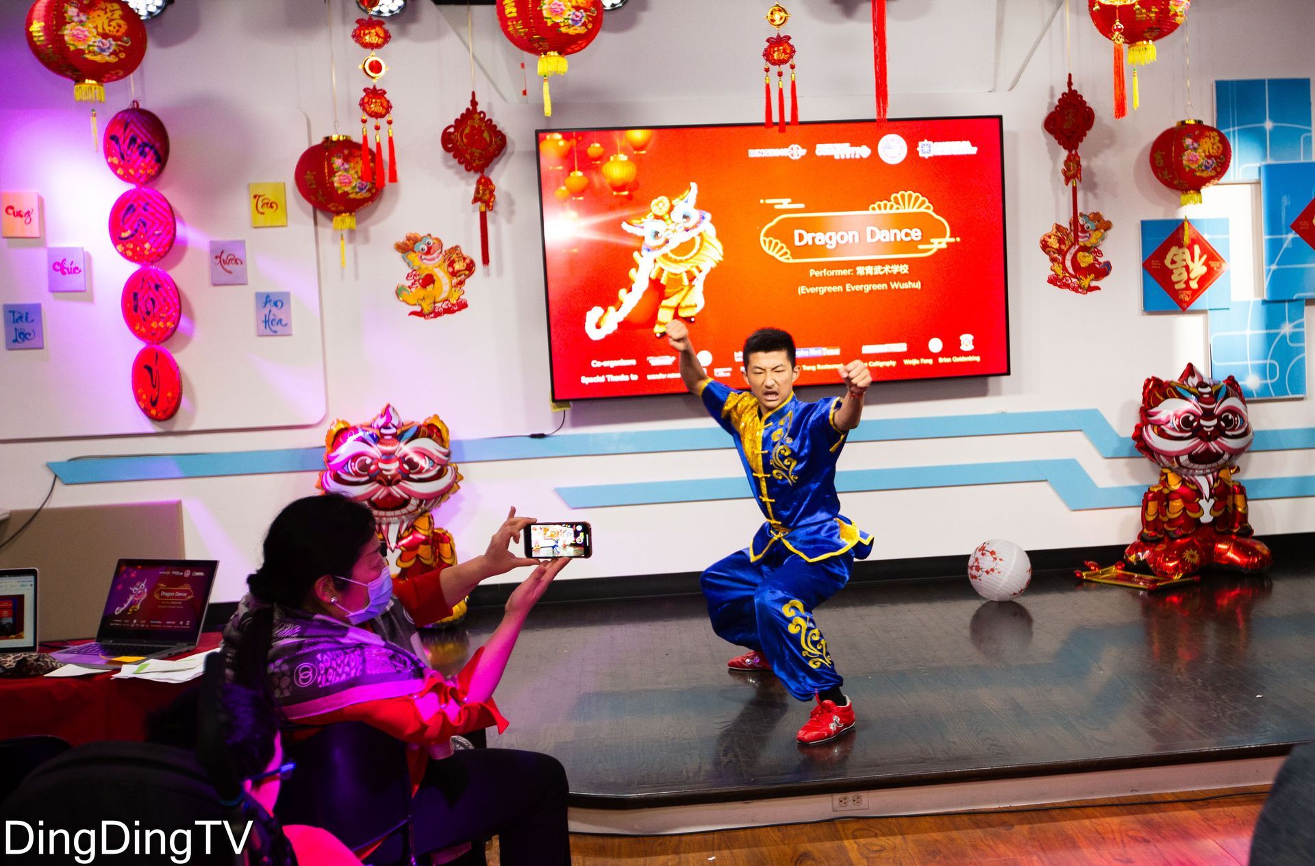 About 100 artists performed at Celebrate Lunar New Year. The performances included the Vietnamese Dance “Spring in the South” and “Em di Chua Huong,” the Korean dance Uhwudong, the Beijing opera dance, the Chinese Dragon Dance, and the Original of the Chinese Spring Festival. Young artists also performed Japanese, Vietnamese, and Chinese songs. Children in attendance received red envelopes.